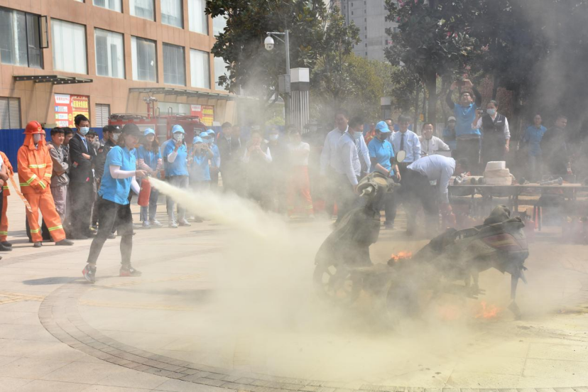 演練環(huán)節(jié)的最后,針對(duì)非機(jī)動(dòng)車充電會(huì)引起的自燃事故,浩洋物業(yè)聯(lián)合社區(qū)消防隊(duì)進(jìn)行了模擬專項(xiàng)演練,讓全體物業(yè)工作人員掌握應(yīng)對(duì)此類突發(fā)事件的應(yīng)變能力。